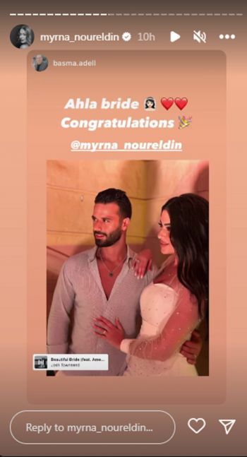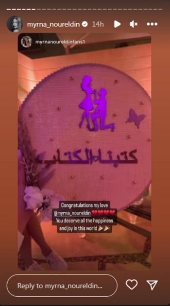كما اعتمدت ميرنا نور الدين على فستان أبيض بأكمام من الشيفون المطرز، وتركت شعرها منسدلا على كتفيها، ونشرت ميرنا صورة عبر حسابها الشخصي مع زوجها، اذ علقت قائلة :"الحمدالله كتبنا الكتاب". وقد هنأتها زميلاتها في الوسط الفني، أبرزهن رنا رئيس، نسرين أمين، هاجر أحمد وندى عادل.