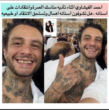 وشارك أحمد الفيشاوي الجمهور صورة وهو يرتدي ملابس العمرة، وظهرت واضحة الوشوم التي يحملها جسمه، الأمر الذي عرضه لحملة إنتقادات واسعة من الجمهور، الذي إنقسم بين من إعتبر أنه لا مانع لمن يحمل وشوماً من أن يؤدي مناسك العمرة.