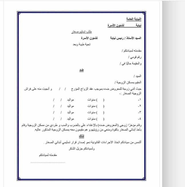 يرغب الكثير من المواطنين في جمهورية مصر العربية، في معرفة شكل استمارة طلب تسليم الصغار في حالة وجود خلافات زوجية، عزيزي القارئ إليكم البيانات المطلوبة: